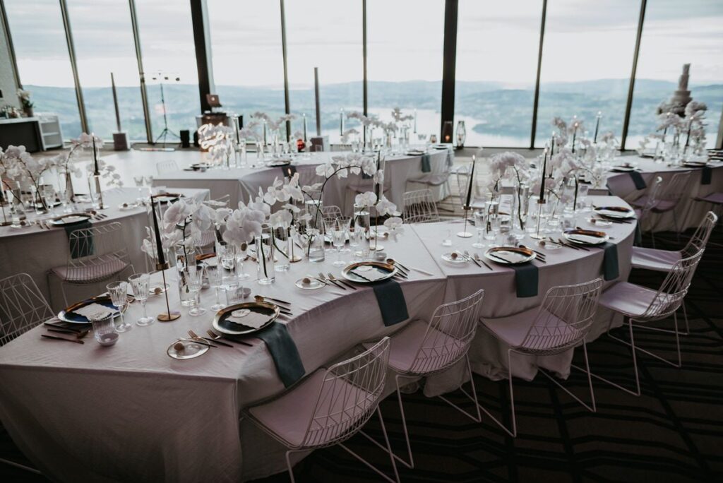 Exklusive Hochzeitsdekoration auf dem Bürgenstock Resort in Luzern mit Nicole Please Weddings