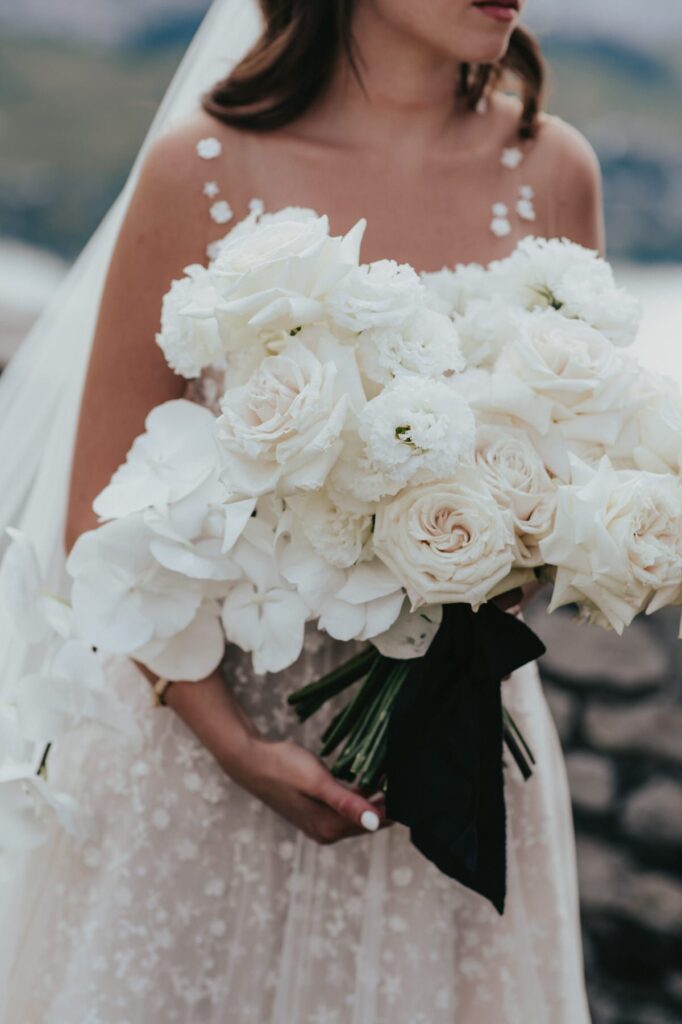 Neben ihrem Strahlen und ihrem wunderschönen Kleid ist der Brautstrauß wohl der schönste Schmuck für die Braut. Bei dieser Sommerhochzeit in der Schweiz strahlte die Braut Tamara mit einem großen Strauß aus wunderschönen weißen Rosen und Orchideen! Das Rebea & Martina von MyAwina haben hier ganze Arbeit geleistet!
