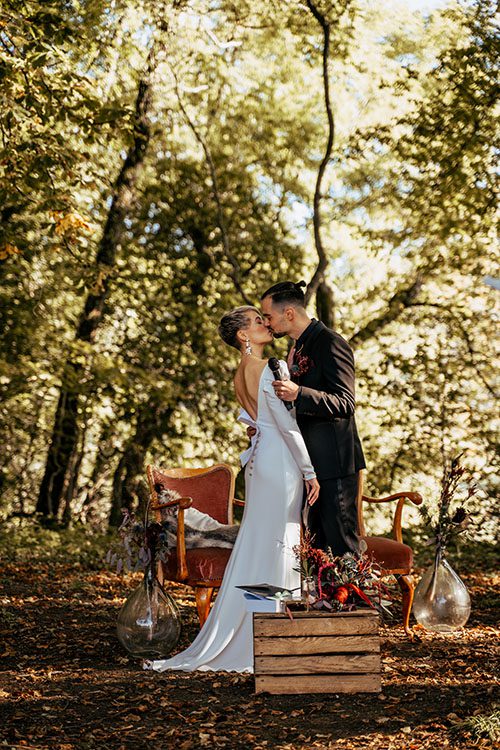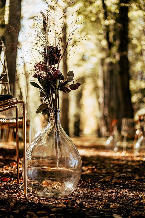 Für diese Herbsthochzeit beauftragte uns Anna-Maria von rockwedding mit einem großen Transport für Hochzeitsdekoration und Lucy Wire Stühlen inklusive Rundum-Sorglos-Service. 3 Tage dauerte der Aufbau, um die komplett leere Scheune in einen Hochzeitstraum zu verwandeln. Ein besonderes Highlight: Die Trauung fand unter freiem Himmel mitten in einem Waldstück statt.